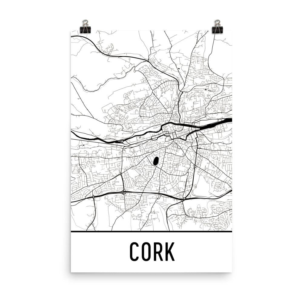 Cork Ireland Street Map Poster Wall Print by Modern Map Art